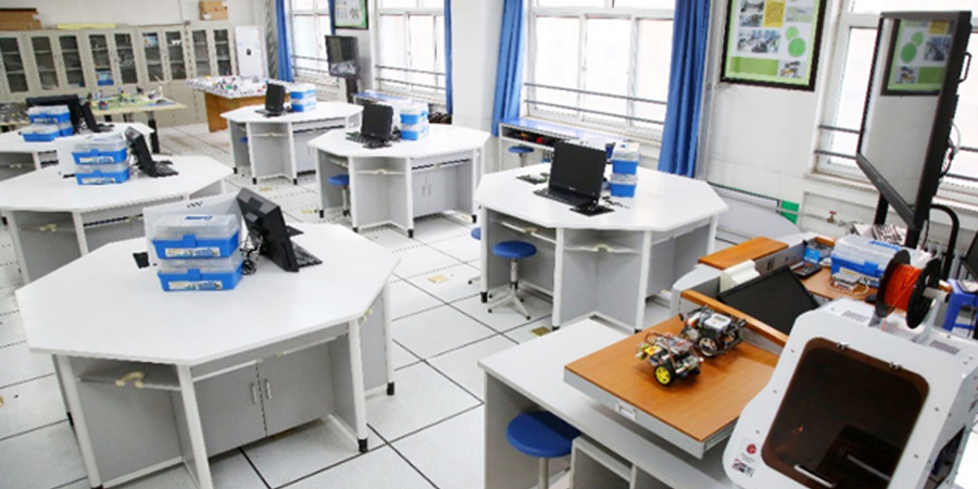 阿斑兔將機器人、創(chuàng)客、3D打印、航模等融為一體,研發(fā)、設(shè)計具有情景體驗、創(chuàng)意生成、原型制作、展示交流等多功能為一體的機器人教育教學(xué)場所,即創(chuàng)新教育實驗室,針對不同年齡段學(xué)生的特點、學(xué)校學(xué)情等,為其提供足夠的空間、設(shè)備和完善的課程體系。
